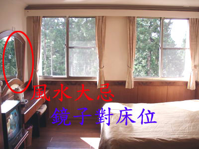 我一看,當然睡不著,風水上的缺陷,一面鏡子正對著床,此乃房間風水的大忌,